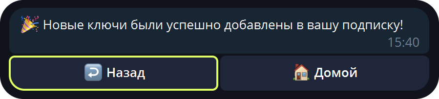 После успешного добавления всех локациий в вашу единую VPN-ссылку нажмите кнопку "Назад":